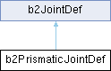 Prismatic joint definition. This requires defining a line of motion using an axis and an anchor point. The definition uses local anchor points and a local axis so that the initial configuration can violate the constraint slightly. The joint translation is zero when the local anchor points coincide in world space. Using local anchors and a local axis helps when saving and loading a game.